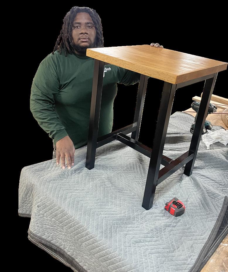 With DE Department of Labor funding, CP Furniture launched a Carpentry PreApprentice program in fall 2023 which provides CP alumni with 3-months of paid curriculum and hands-on training/work experience in construction, woodworking, and welding. It has been a great success so far: of the six who have graduated (100% completion rate), four are working in construction earning $15.50-$20/hour, one is working on an Associate’s Degree in Architectural Engineering at Del Tech, and one is working at CP Furniture while searching for a job.