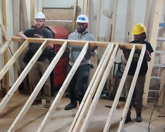 In their own words, here is what the trainees have learned so far: RJ - “I’ve learned how to read blueprints and how to build stairs, as far as stringers, risers, treads – all of that.” Xavier - “I’ve learned a lot like reading the measuring tape, subflooring, different tools, bits, and measurements.” (His favorite part is “Just showing up and being a part of it.”) Nhaki: “I learned how to build a wall. I’ve never done that before. We built a room.”