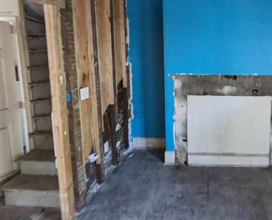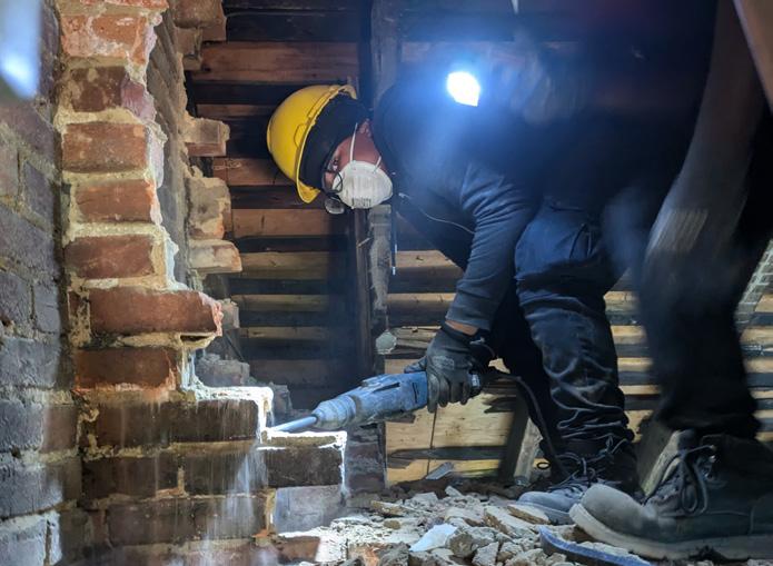 The approximately 9-month project started with a full demo (“full gut”), including removing a 3-story chimney to make room for new stairs. The trainees will have the opportunity to work alongside subcontractors such as electricians, install new windows and doors, and do the finishing (drywall, trim, and painting), hardscaping and landscaping.