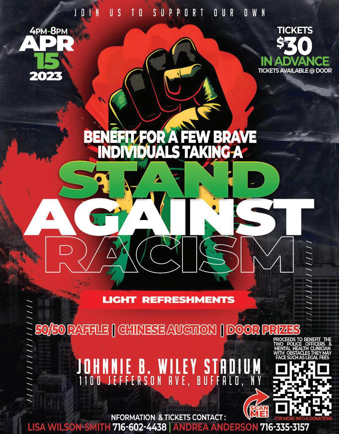 Taking A Stand Against Racism Fundraising Event 4-8 PM, Johnnie B. Wiley Complex, 1100 Jefferson Ave. donation: $30. Tickets may be purchased by calling Betty Jean Grant @ 716-602-5877; Lisa Wilson @ 716-602-4438 or Andrea Anderson @ 716-335-3157.
