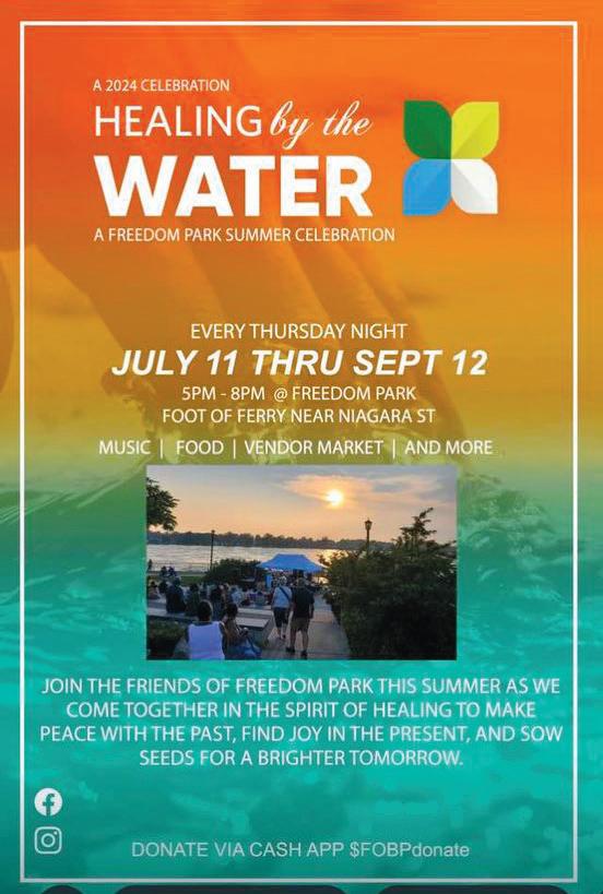 HEALING BY THE WATER @ FREEDOM PARK, Foot of Ferry,continues thru Sept. 12. Music, food, vendors & More.