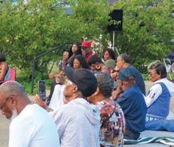 HONOR SPACE: Residents above visited the Honor Space in the Tops Market parking lot on Jefferson Avenue last Friday evening. Honor Space is dedicated to the memory of those murdered and injured in the racially motivated massacre at the supermarket two years ago which left 10 Black people dead. It features the inspirational sculpture at it’s center titled “Unity,” which was created by Buffalobased artists Valeria Cray and her son, Hiram Lee Cray. Most recently, lawyers for the shooter, Payton Gendron, a young White supremacist who was 18 at the time of the killings, are seeking to save him from the death penalty. A federal trial date has been set for September 8, 2025. He has already been sentenced to life in prison without parole in the murders.