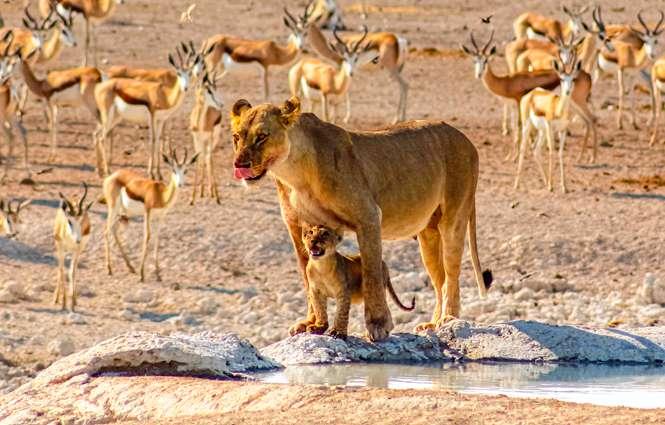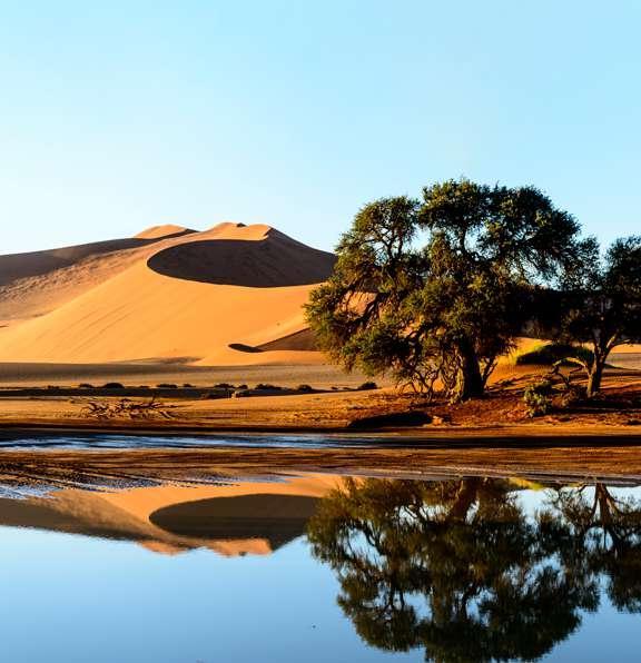 Genauer gesagt, erwartet dich hier ein Feuerwerk aus einmaligen Erlebnissen und ganz besonderen Atempausen: von der Safari im Nationalpark bis zur Wanderung im heißen Wüstenwind, von herzerwärmenden Begegnungen mit Einheimischen bis zum Sundowner beim farbenprächtigen Sonnenuntergang.