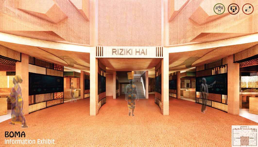 Riziki Hai is a living representation of the Harvest Cycle, embodying the stages of Anticipation , Grind , and Relief—just as farming moves from preparing the land to nurturing crops and harvesting. This cycle represents the journey of sustenance and growth, shaping the market’s design and user experience. Anticipation symbolizes hope and preparation, seen in the entrance and exhibit areas, where visitors orient themselves before immersing in the market. Grind reflects hard work and resilience, mirrored in the bustling market stalls, where movement and trade capture the energy of a growing season. Relief represents the reward of the harvest, expressed in community and relaxation spaces, where people pause, connect, and celebrate their achievements. By weaving traditional and cultural practices with modern design, Riziki Hai becomes more than a market—it is a space where livelihoods thrive, connections form, and both body and spirit are nourished. Guided by the rhythm of the Harvest Cycle, it fosters continuous growth, resilience, and engagement, shaping a vibrant and dynamic marketplace that reflects the culture, hard work, and daily life of the Kisii community.