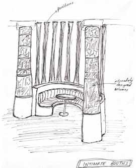 The main hallway leading to the bar is designed to evoke the grandeur of an ancient Egyptian royal procession. Guests are guided through a space featuring tall, majestic pillars and intimate seating booths on either side, offering both comfort and a sense of regality. Custom banquet seating accommodates large groups, further enhancing the grandeur and communal experience.