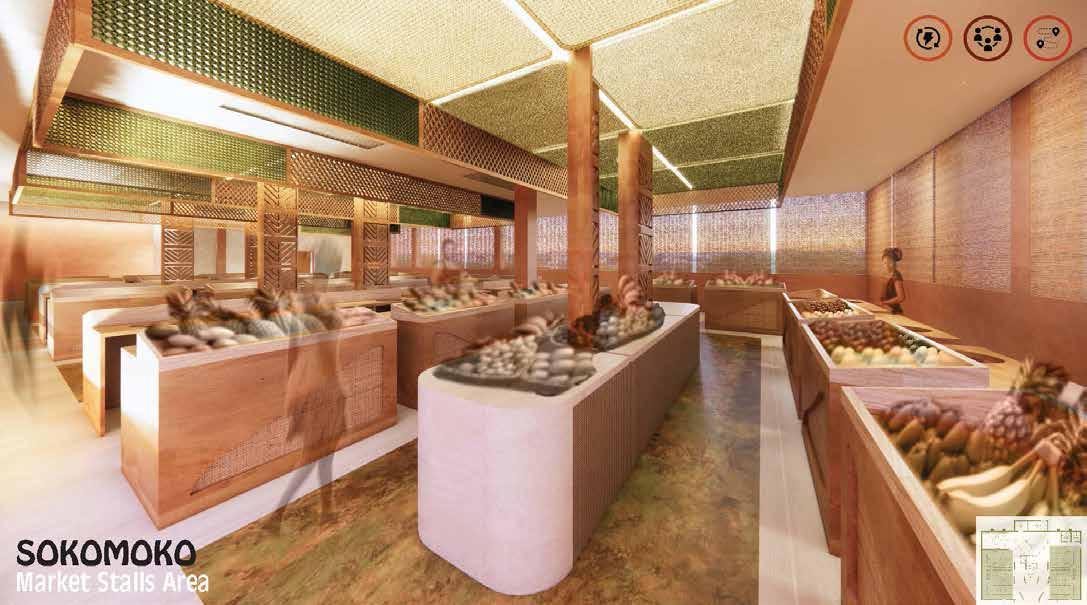 Inspired by the structured rows of farmland, Sokomoko enhances movement and accessibility with clear pathways and organized vendor zones. Its adaptable stall designs optimize space, making shopping and trading more efficient.