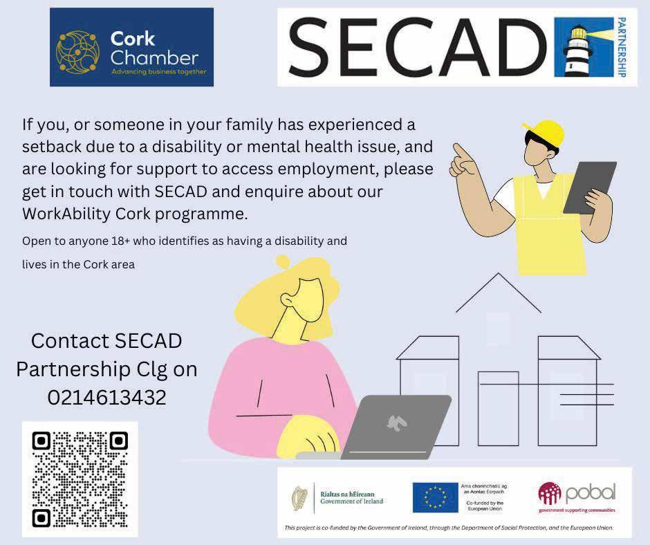 Cork Chamber is proud to support the WorkAbility Inclusive Pathways to Employment Programme in partnership with SECAD Partnership. Over the summer months, we will be actively recruiting participants for this important initiative, which supports individuals who have experienced setbacks due to disability or mental health challenges in accessing meaningful employment.