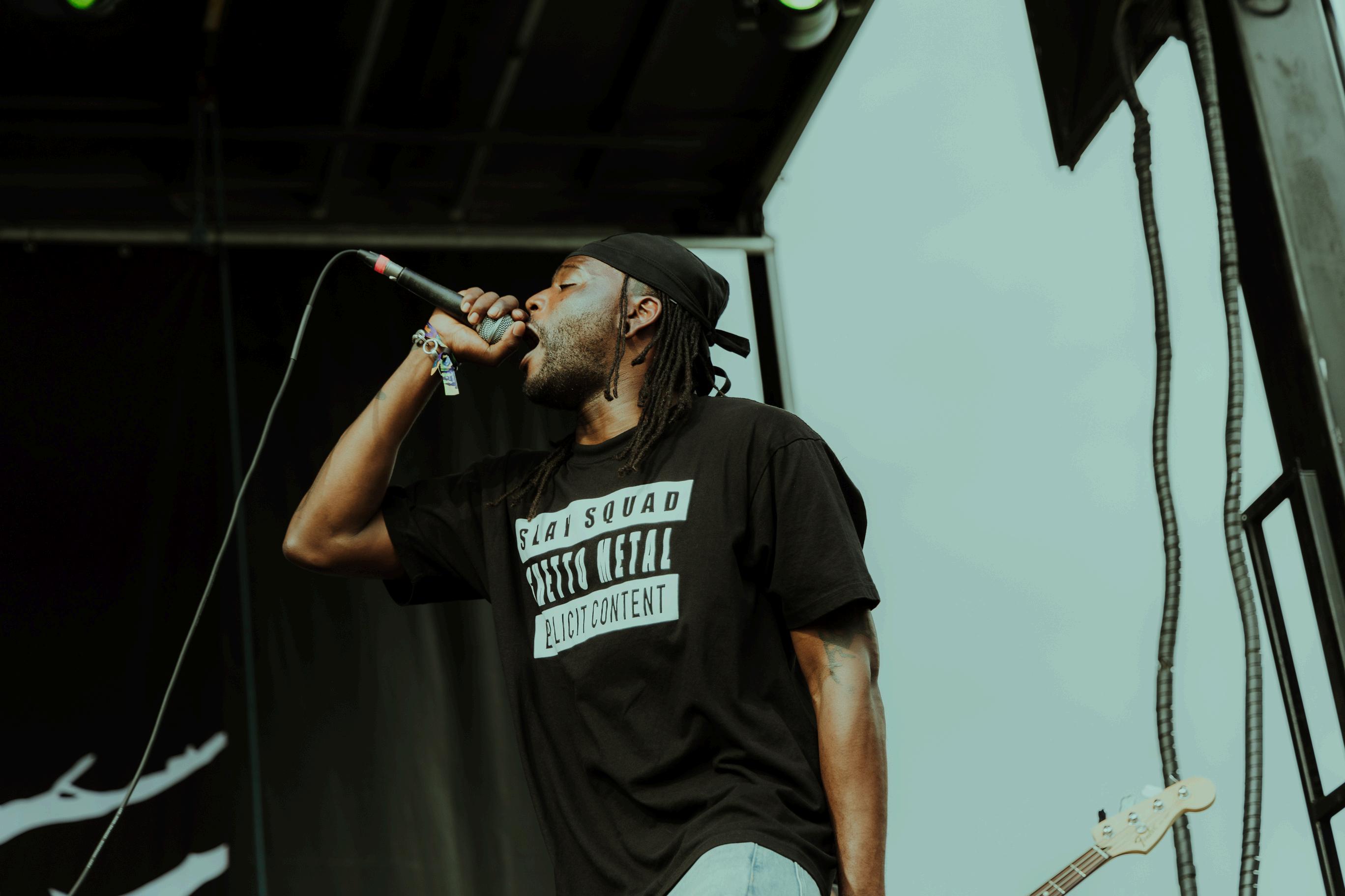 While walking around the festival grounds on Saturday, I learned about a band called Slay Squad, performing at the Hot and Heavy stage I decided to watch them at the last minute and was pleasantly surprised Their music was unique and jaw-droppingly good, and they won me over when they called for a circle pit around two people fighting They played shortly after Silly Goose, and given how hard and wild they both went, it was a perfect fit