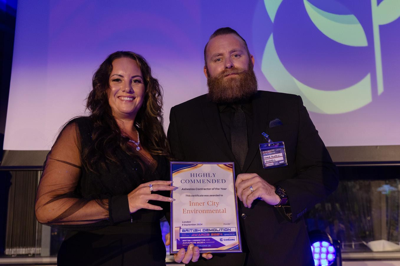 This year’s awards were made even more special by the 3rd annual Demolition Hall of Fame ceremony, which welcomed another industry luminary into the ‘Asbestos Pioneer’ category. I had the distinct honour of presenting this recognition to Liz Darlison, CEO of Mesothelioma UK and a dedicated nurse who has tirelessly advocated for those affected by asbestos-related illnesses. Liz’s work has made an extraordinary impact and we are thrilled to celebrate her welldeserved induction.