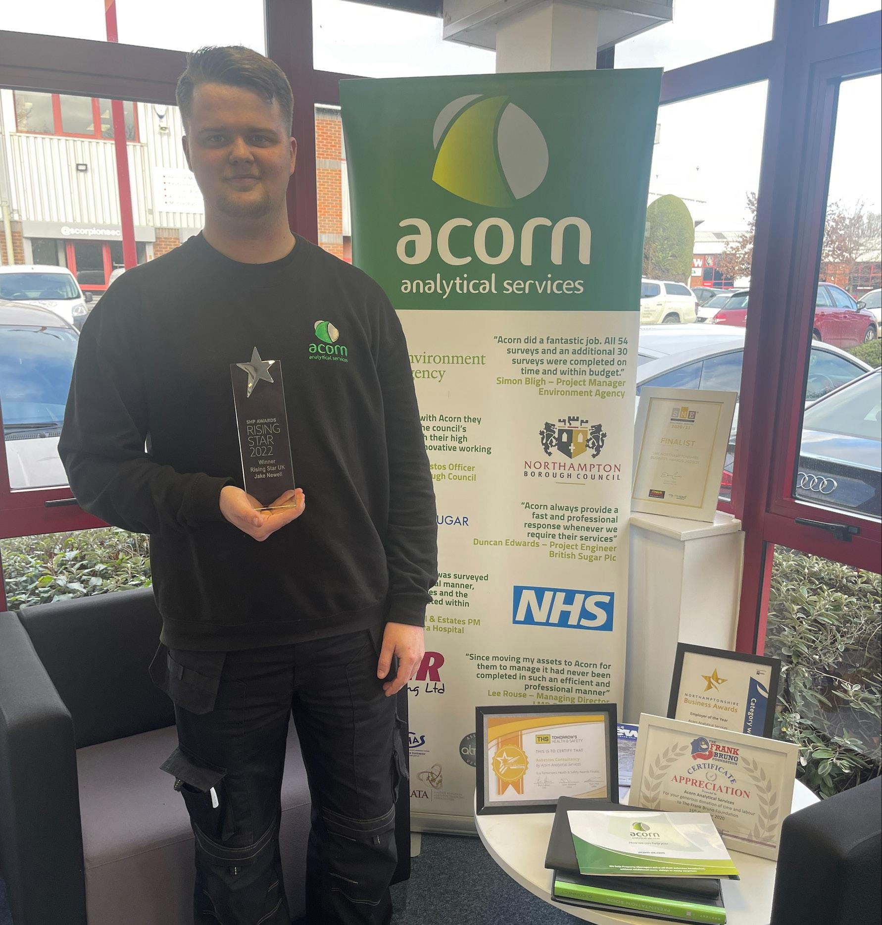Jake Newell, Asbestos Analyst at Acorn Analytical Services with his Rising Star UK award