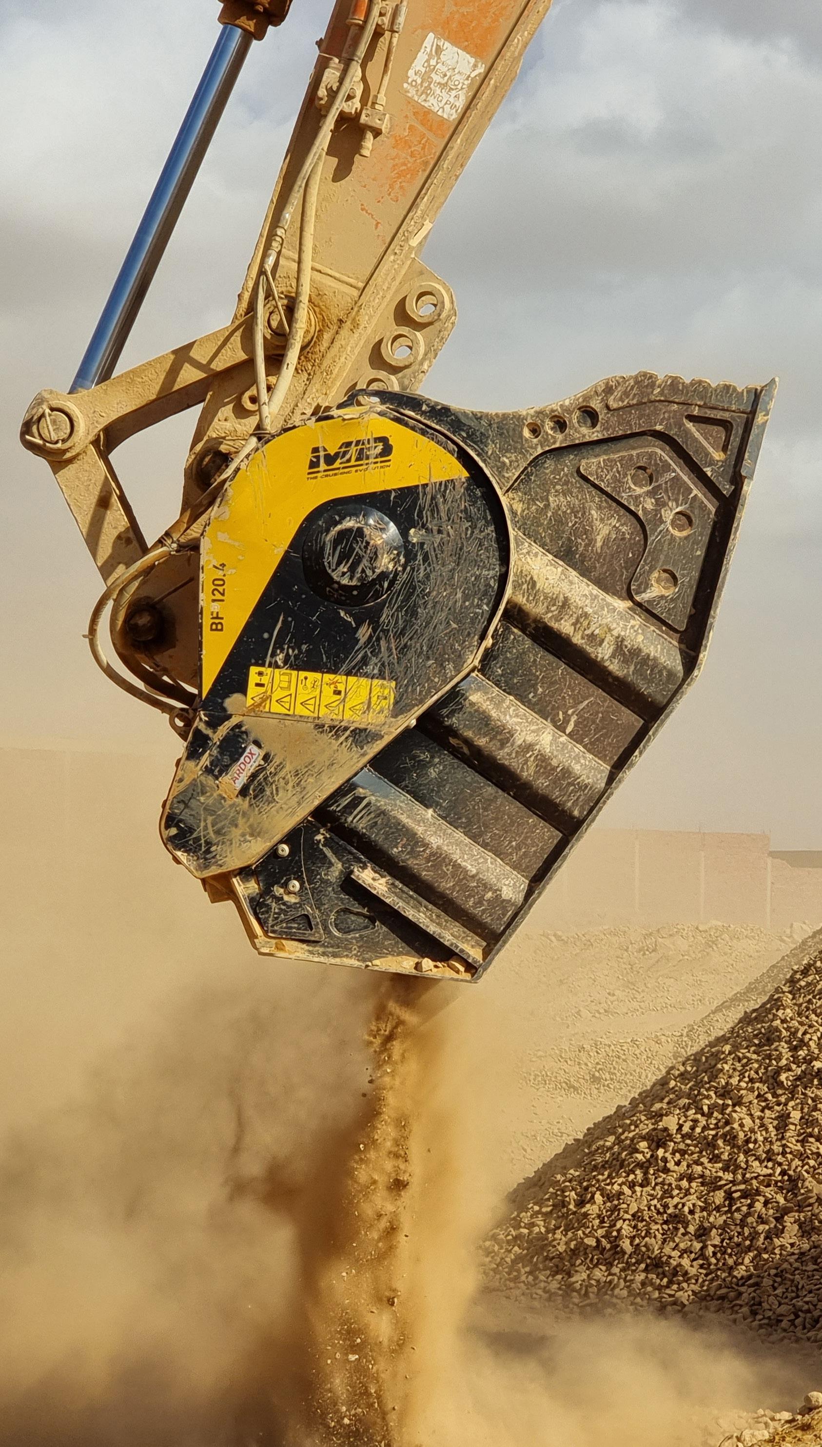 The decision to recycle materials with the BF120.4 yielded astounding results. All that is needed to run the MB Crusher bucket is one excavator and one operator, and by producing their aggregate rather than purchasing it from suppliers, the client slashed costs saving 120 Egyptian pounds on every cubic metre. Producing 280m 3 per eight-hour shift and operating with two shifts per day this amounted to a remarkable 560 m 3 of aggregate.