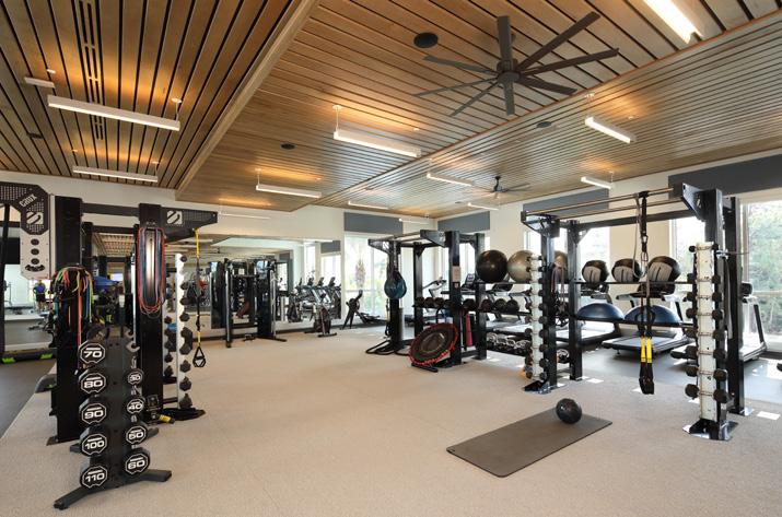 • Enlarged cardio, strength and functional training with expansive ceiling heights, ample natural light and views overlooking the pool and golf course