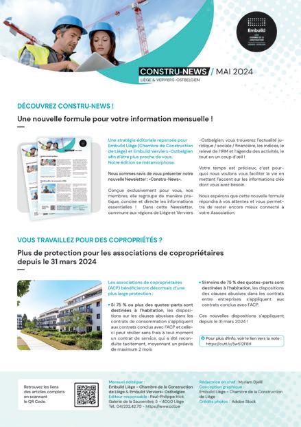 Mensuel édité par : Embuild Liège - Chambre de la Construction de Liège & Embuild Verviers- Ostbelgien