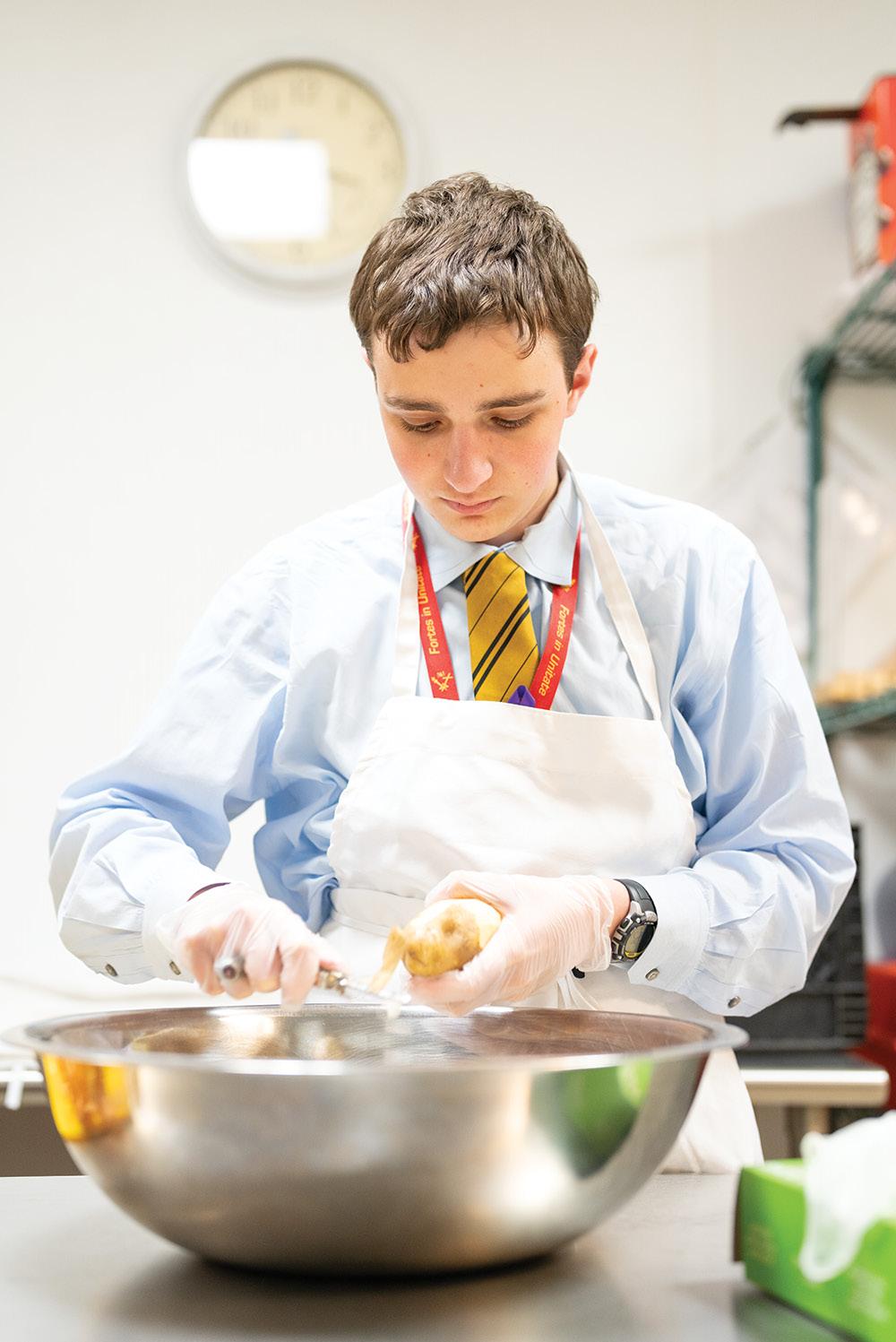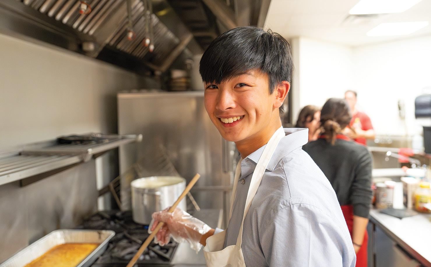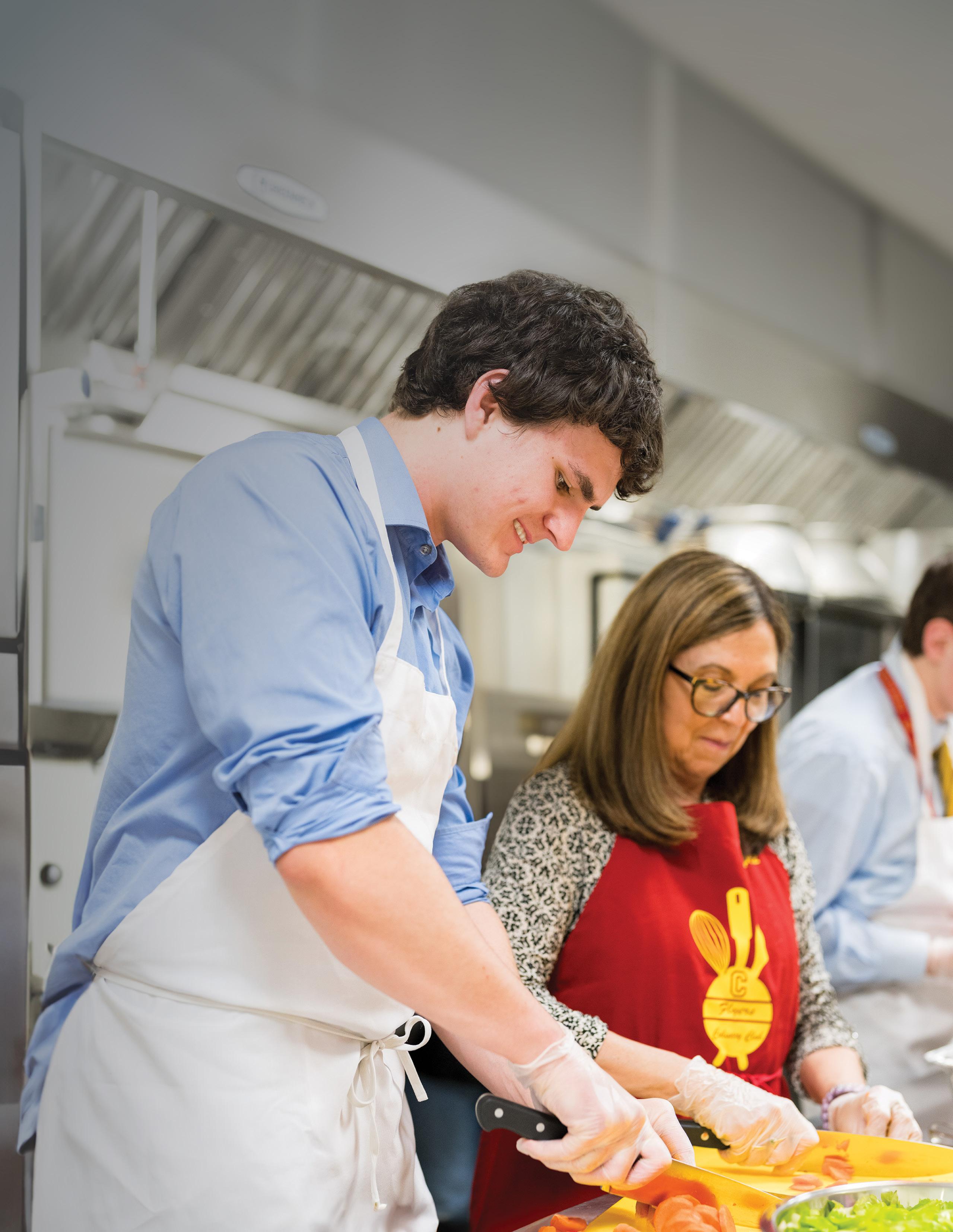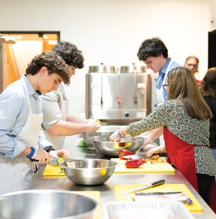 The Culinary Club also provides service to the larger school community by sponsoring and cooking at the annual junior and senior evenings of recollection. “We are teaching them about food, absolutely, but we are also, indirectly, giving them a deeper sense of familial spirit and faith," reflects Mrs. Mansueto. “The table of fellowship is a space for students to share their joys and sorrows, grow in friendship and community, and enjoy some amazing quality food that they can take ownership of as their work.” Serving the school community by cooking the meals at the evenings of recollection emphasizes the importance of the students being at the nucleus of what Chaminade does.