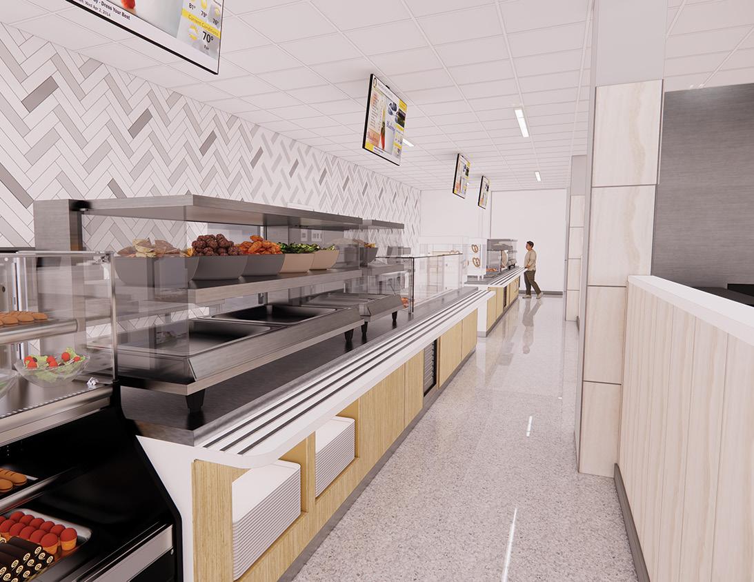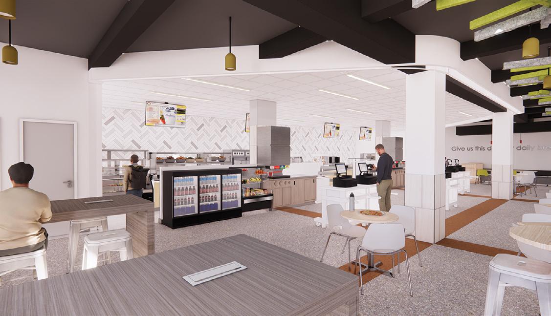 The physical cafeteria space will transform from its current layout to a more open-concept food hub where students can truly be in camaraderie and fraternity with one another. “We have been working closely with our architect and the Lessing’s staff to develop