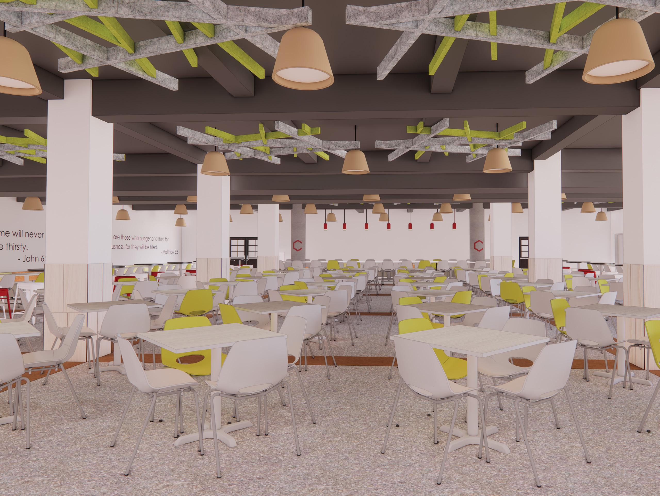 a space conducive to student comfort that strengthens communal bonds,” explains Bro. Thomas. “We are completely re-thinking the space: from offering a variety of seating options to re-working how tables are situated. We are adding seating capacity while keeping the design focused on fostering and strengthening the table of fellowship. The space will be more modern-looking, akin to that of an open food court one might find on a college campus.”