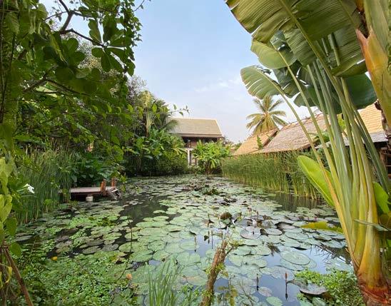 In the heart of Luang Prabang, surrounded by lush greenery and lily ponds, lies