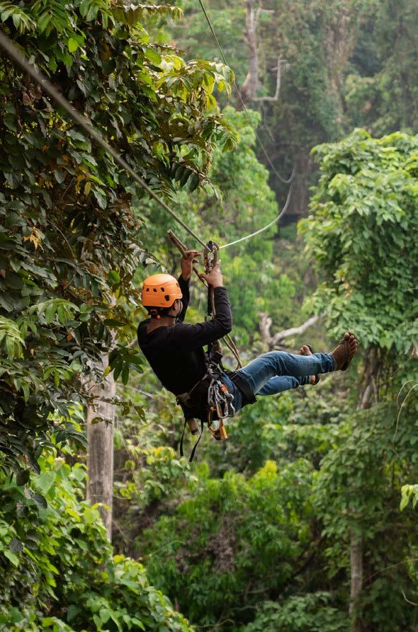 F or those seeking more than contemplation, a five-stage zipline course sends adventurers soaring through the canopy. Racing past ancient trees and over the falls themselves, participants gain a thrilling bird's-eye view of the azure cascades below.