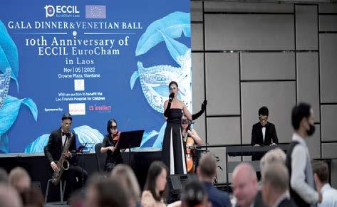VIENTIANE, LAO PDR On November 5th 2022, the European Chamber of Commerce and Industry in Lao PDR (ECCIL) celebrated its 10th anniversary with a spectacular gala dinner and Venetian ball. The celebration, which was jointly sponsored by the European Union in Lao PDR, EuroCham’s Silver Sponsor CS Intellect and Gold Sponsor Prudential, also featured auctions to benefit the Lao Friends Hospital for Children.