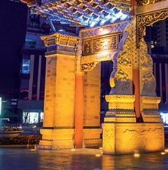 above: The entrance to one of the Tibetan-style monasteries right: In keeping with Buddhist tenets of change, a Tibetan monk embraces the modern age