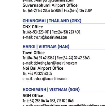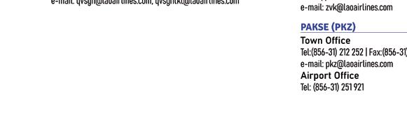 Headquarters Wattay International Airport Vientiane Capital, Laos Tel: (856-21) 513243-46, Fax: (856-21) 513247 www.laoairlines.com