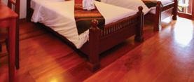 酒店提供各种房型供您选择,不仅有泳池别墅, 还有经济标准房。一条步行道蜿蜒穿过郁郁葱葱的绿 植,通往酒店木质联排别墅,从房间内可以俯瞰南咖 河的潺潺流水。