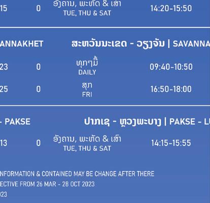 MAY / JUNE 2023 56 EXPLORE Nam Kat Yorla Pa 12 20 32 ADVENTURE Return to The Rock SPOTLIGHT The Streets of Savannakhet CONSERVATION Making Better Choices for Sustainable Tourism in Laos 50 42 TRAVEL A Stroll on the Right Bank TASTE Getaway in the City CONTENTS 42 32 63 ON THE AIR Lao Airlines Information 50 56 12 20