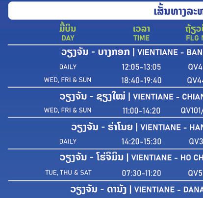 FLIGHT ROUTES | SCHEDULES SPECIALS | SERVICES Lao Airlines Updates