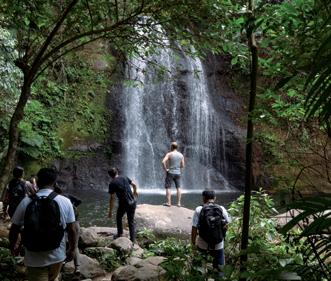 在酒店周围有很多项目可以探索,足够安排上几 天的行程:高空滑索、攀岩、绳降、乘坐全地形车或参 观瀑布。所有这些活动都距酒店有一段距离,客房、游 泳池和餐厅不会受到干扰,客人可以尽享私密和宁静。