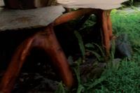 Wooden steps flanked by tangled banana plants and orange bird of paradise flowers led me down to a small, roofed gatehouse