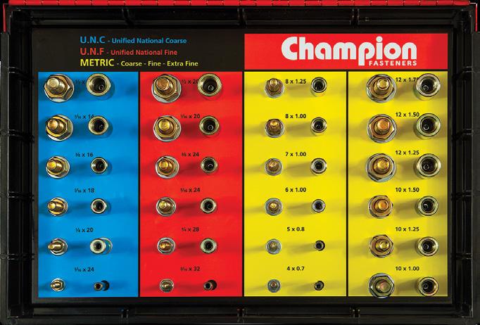 Champion Fasteners Assortment Range is the most comprehensive range of its type assembled in Australia. The range has been designed to suit the requirements of the professional automotive and engineering industries. To ensure our quality is maintained, we only source the best possible products which conform to international specifications. Being 100 % Australian owned and operated, we always endeavour to support local suppliers and the community at every opportunity we get. Our commitment to quality combined with our strong customer focus has established Champion as a leader in specialty fasteners and consumables.