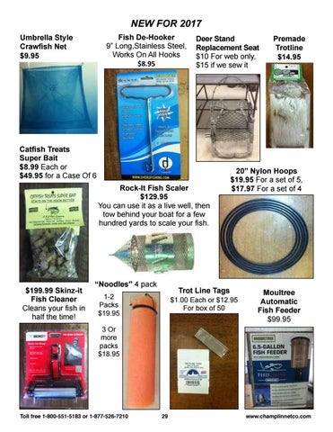 Catfish Treats Super Bait $8.99 Each or $49.95 for a Case Of 6 Rock-It Fish Scaler $129.95 You can use it as a live well, then tow behind your boat for a few hundred yards to scale your fish.