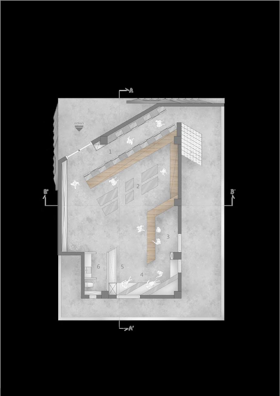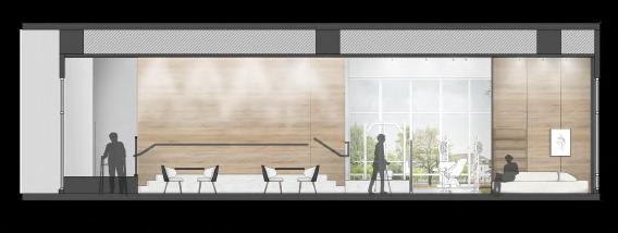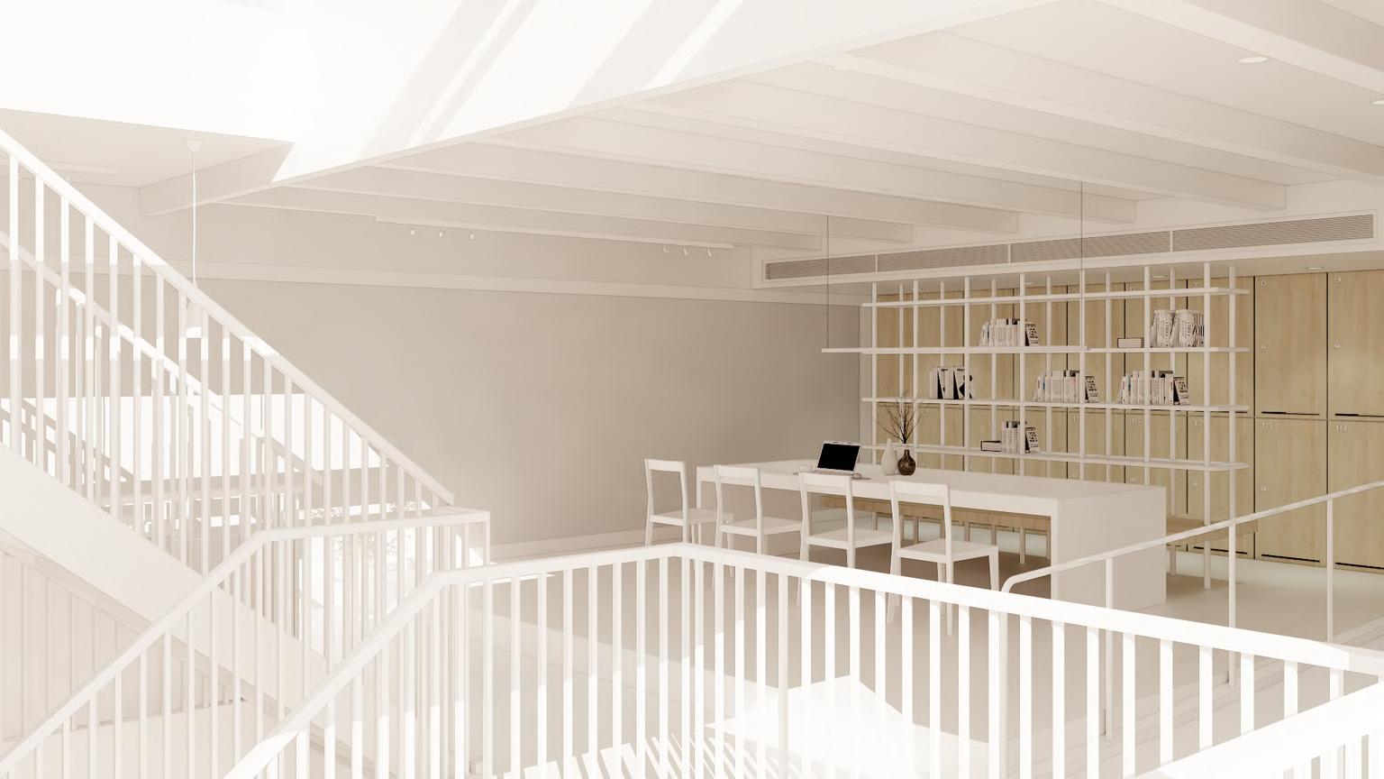 以「社會凝聚」與「復健運動」議題成為核⼼主軸,再以陽光進⼊空間的關係與材質結合輔助呈現整體空間予⼈的