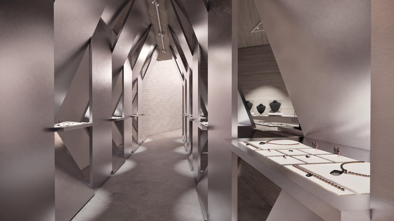 以 錫 線 編 織 ⼯ 法 轉 換 為 編 織 意 象 , 再 將 此 原 素 座 室 內 外 整 合 ,