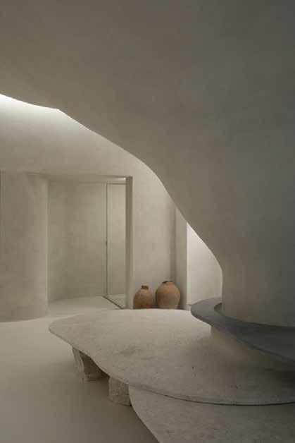 柱子和天花板融合而成的體量以一種有機的方式成為一個元素, 它指的是天然洞穴,並賦予整體統一性。