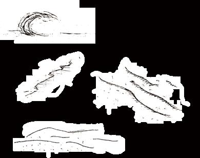 cliffs, caves, stalactites, sands, stones and the like and the movements of the waters with their tracks and shapes