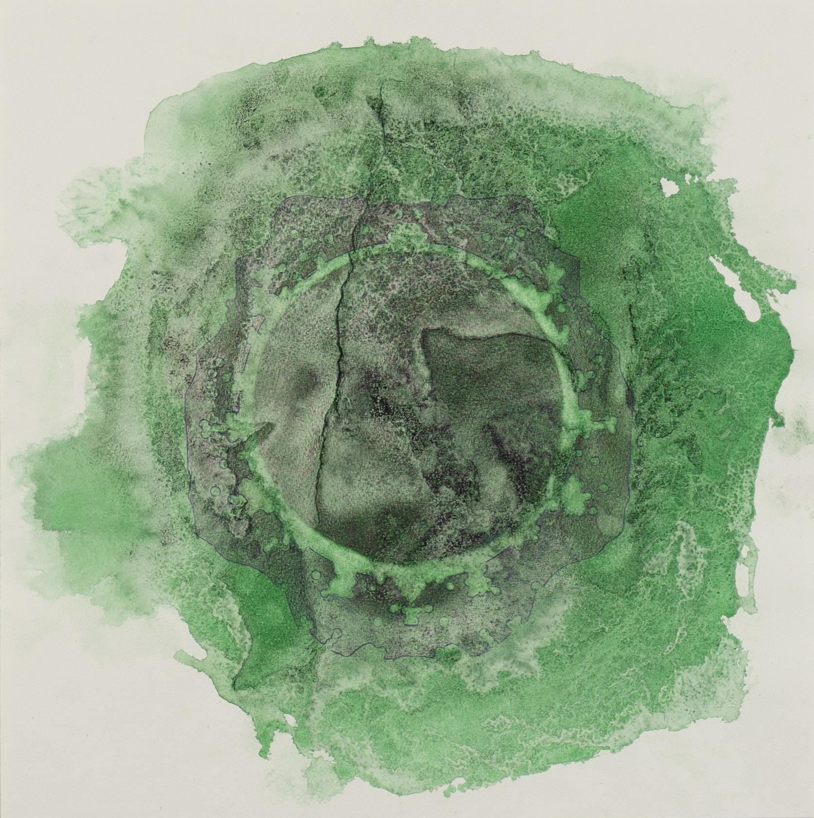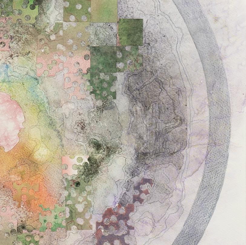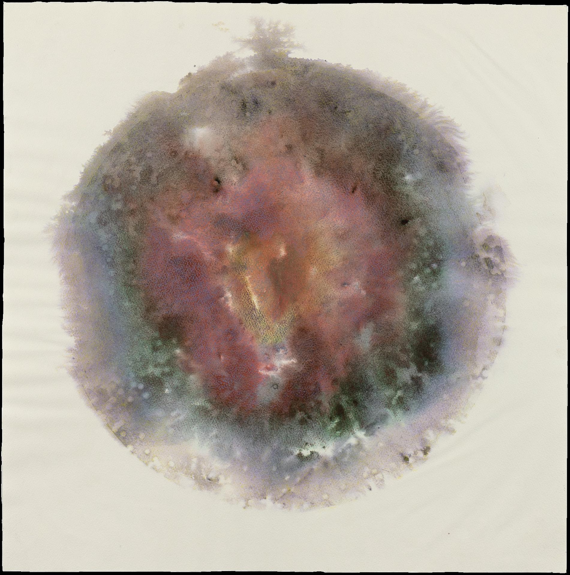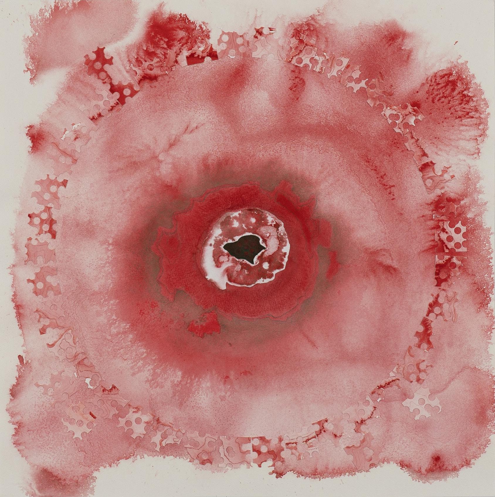 “I selected structural elements within Dante’s poem to guide my approach for making the drawings. My intention was not to illustrate the narrative, so I looked for themes and concepts in the text that might furnish ideas for materials and processes to use as analogs. With the notion of redemption in mind, I chose a set of watercolor drawings I had already begun working on that I felt still needed further resolution. I thought I might ‘redeem’ them by subjecting them uniformly to new sequences of labor-intensive processes. These entailed transferring, staining, optical and complementary color mixing, cutting, puncturing,