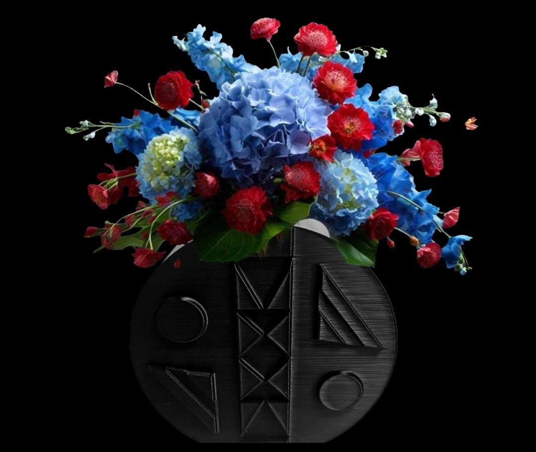 Khanya Mthethwa, Tswana Shweshwe pattern inspired, 3D printed vase, 23,4cm x 32,5cm, 2024.