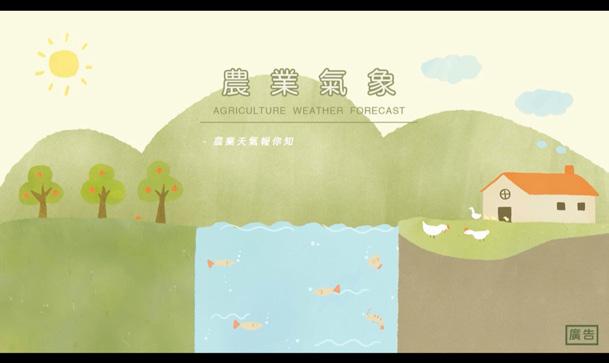 針對農業農民客群所設計的氣象片頭,涵蓋台灣農業動植物及漁業養殖, 並給予農民最新關於作物天氣資訊。