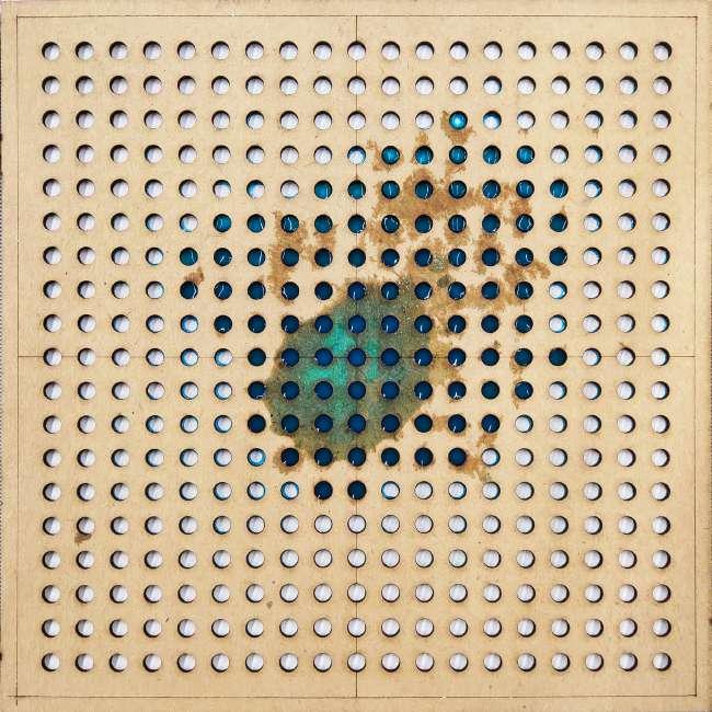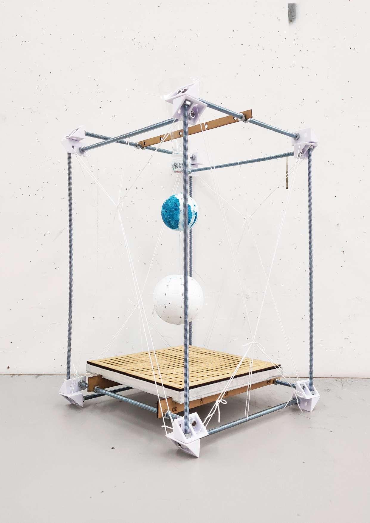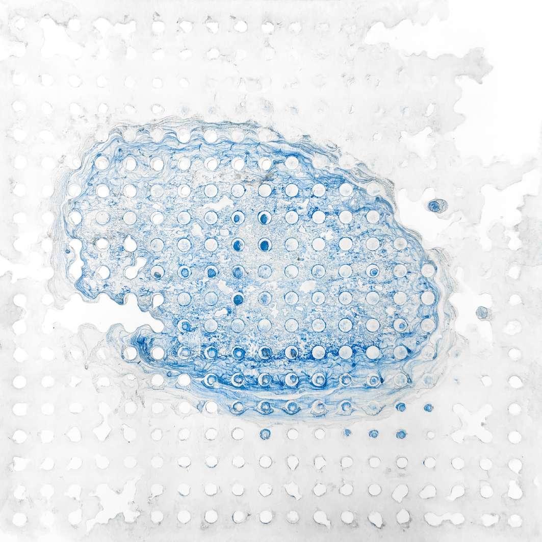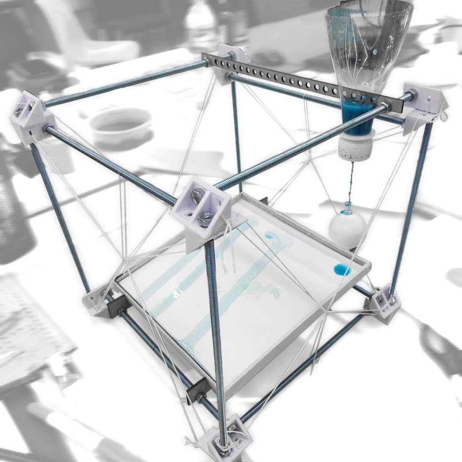 I tried to build a device to set up the various components to make the results more reliable. So I used a cube as a base frame and set up the dripper at the top, the receiver at the bottom, and the transform device in the middle. I tried to do the experiment from the three basic dimensions——point, line and Plane, and tried to use this device to replace painting brushes to see what the final result would be. In the end, I can get a very nice pattern, and the foam ball on the converter can capture some trajectories of pigments.