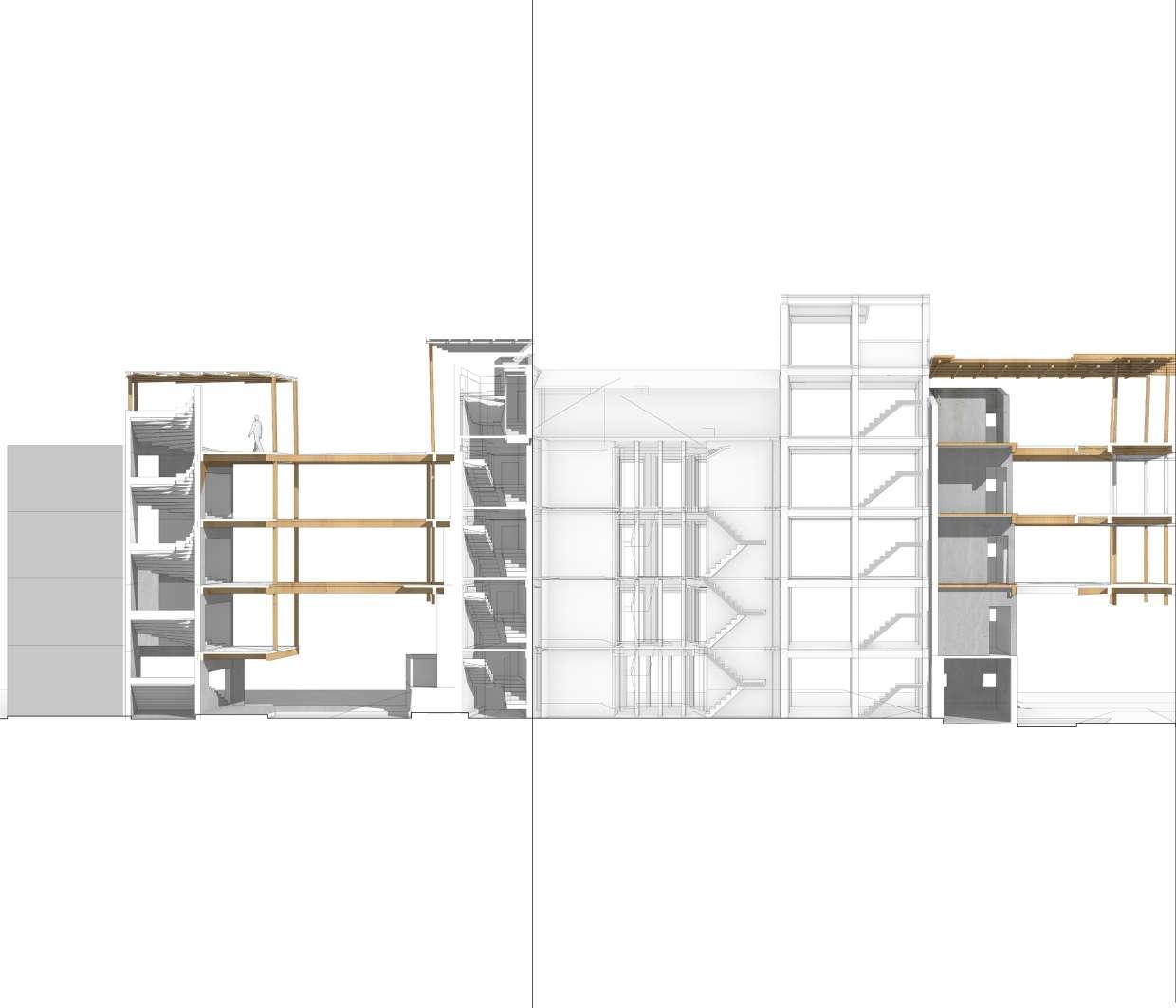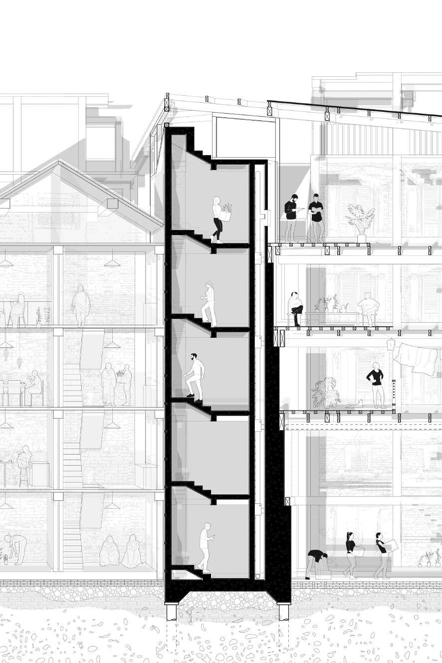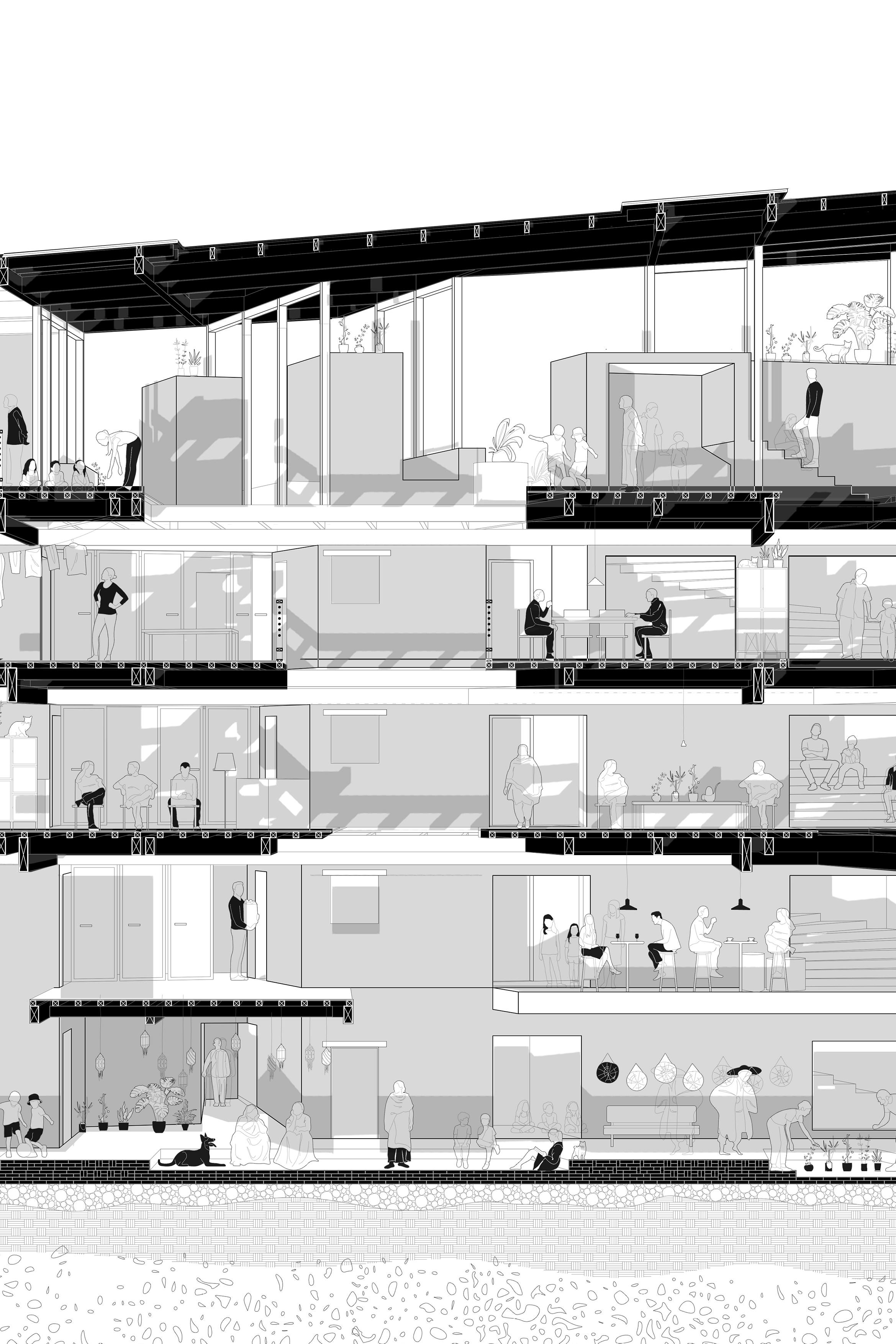 Insipired by dutch structuralism, we believe this practice is on the one hand about the making open-ended building structures by the repeated use of basic elements. In this case , the ‘Core’ and ‘Frame’ , both the elements themselves and the way they are linked are conceived to facilitate multiple uses and future growth and change.