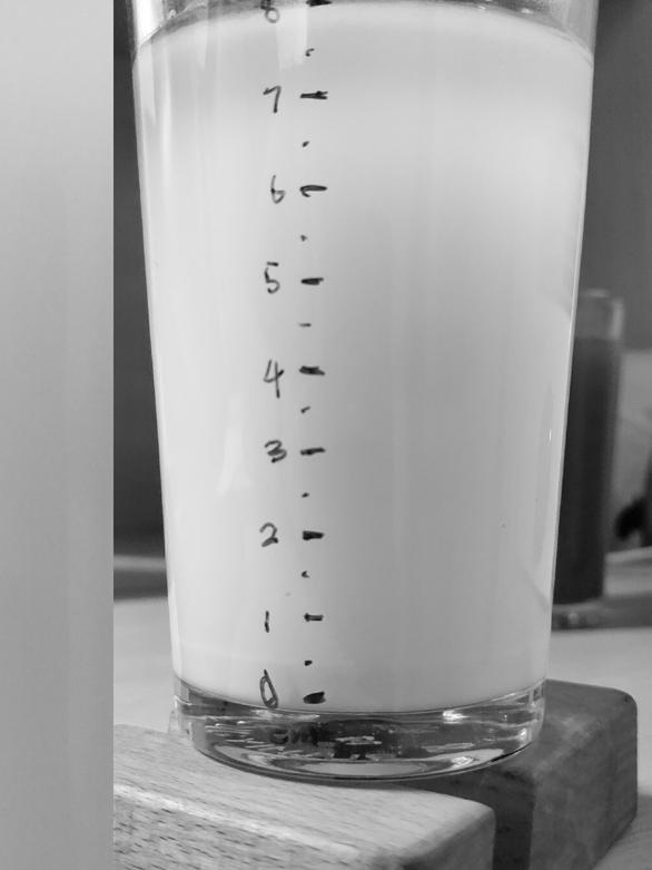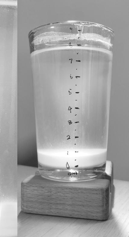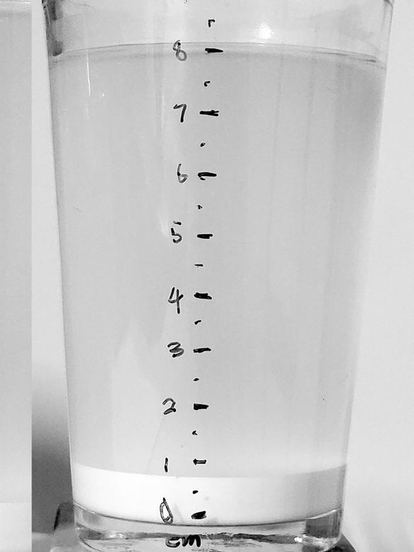 In addition to the Sedimentation experiment on pigments, I also tried to find some particles that can observe the gradual change of the liquid, such as starch. Starch will obviously settle down and layer with moisture over time, and the water will have a gradual change from white to transparency. Maybe I can find some inspiration from it. But this is just a pure sedimentation experiment. Nothing was transformed.