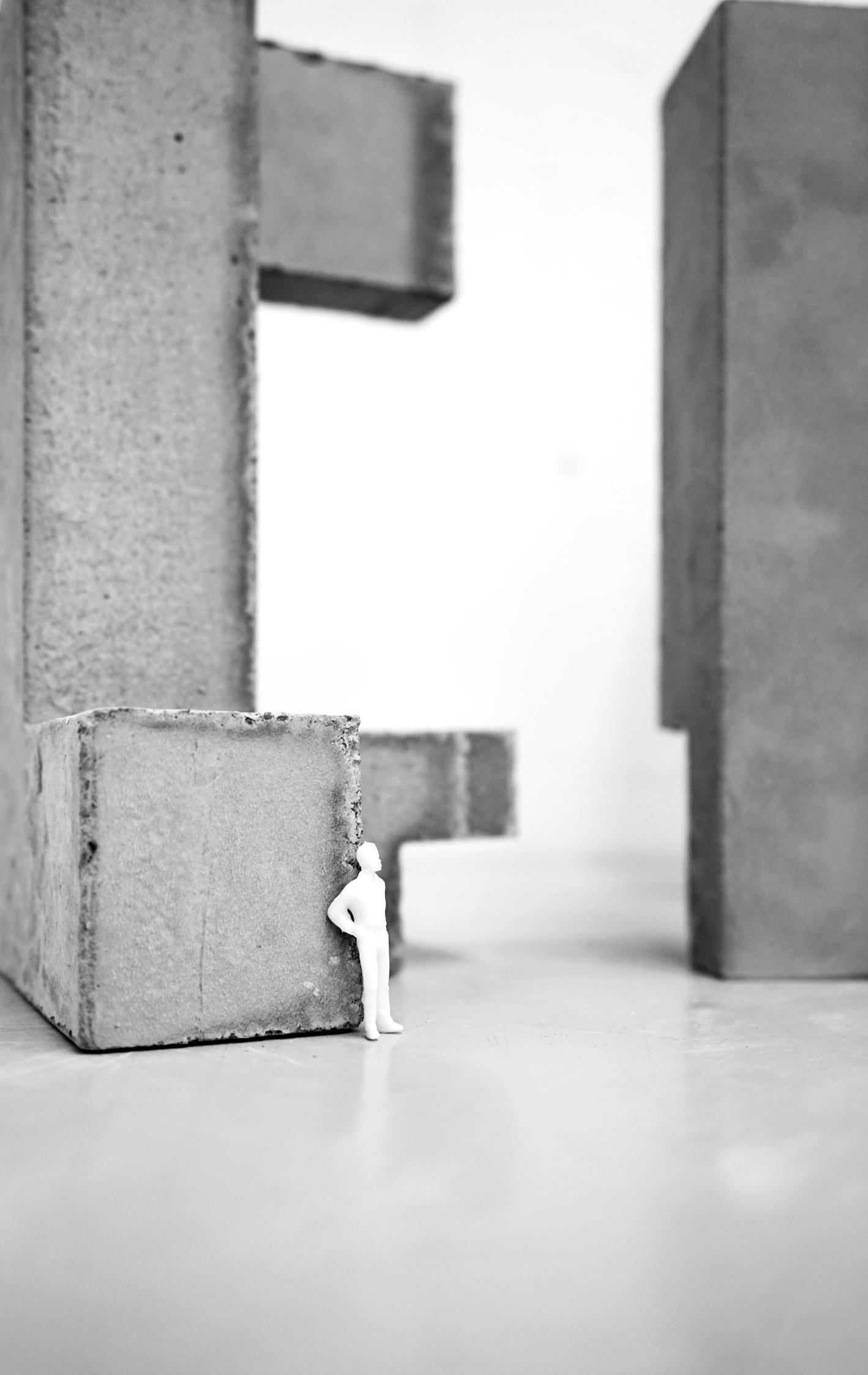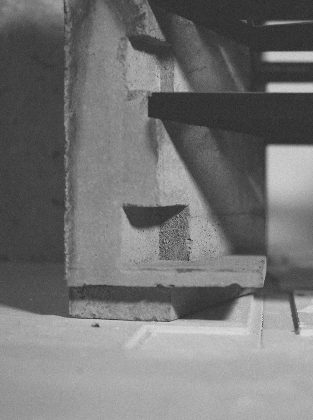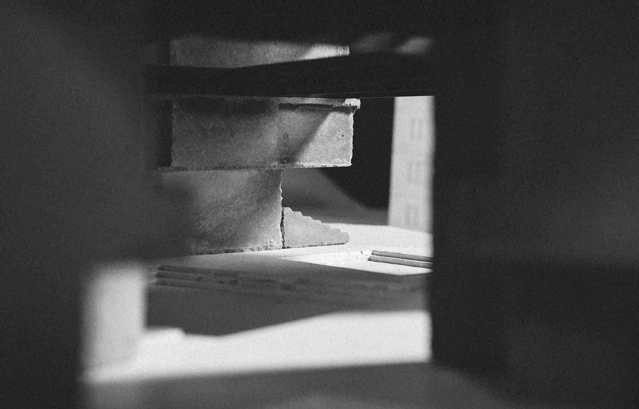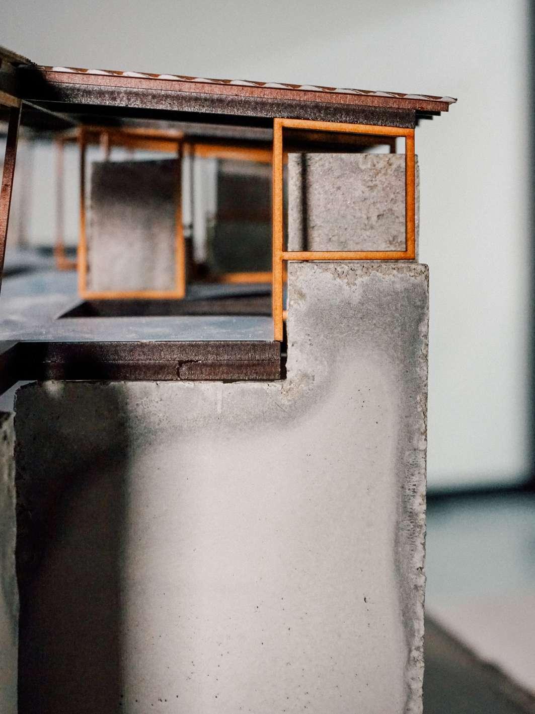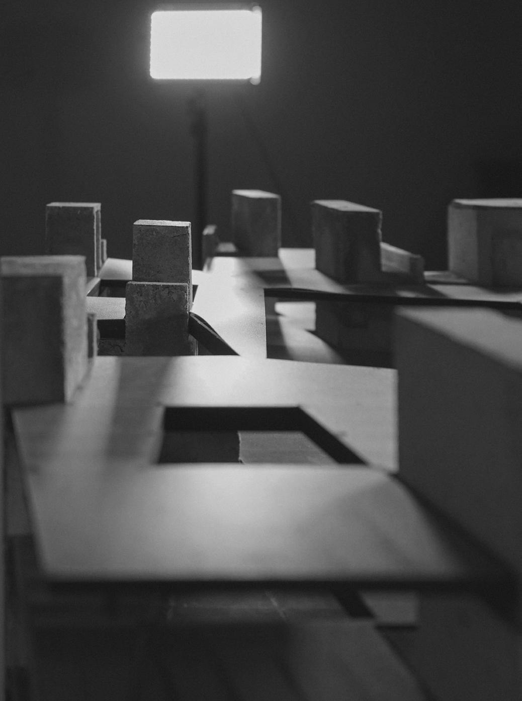In this phase duration, we are trying to use the concrete as the physical model material for the first time. At the beginning, we use the high-density foam boards to splice together as the molds of each individual mass. The negative space formed the final concrete blocks. Through the serval times experimentations, we can conclude the cement and water and sand in ratio of 2:1:1. After fully mixing, we pour concrete into molds slowly and lightly tapped the molds side to separate the bubbles form liquid cement. The drying process duration about 24hr and blade cut foam board to take out the concrete mass.