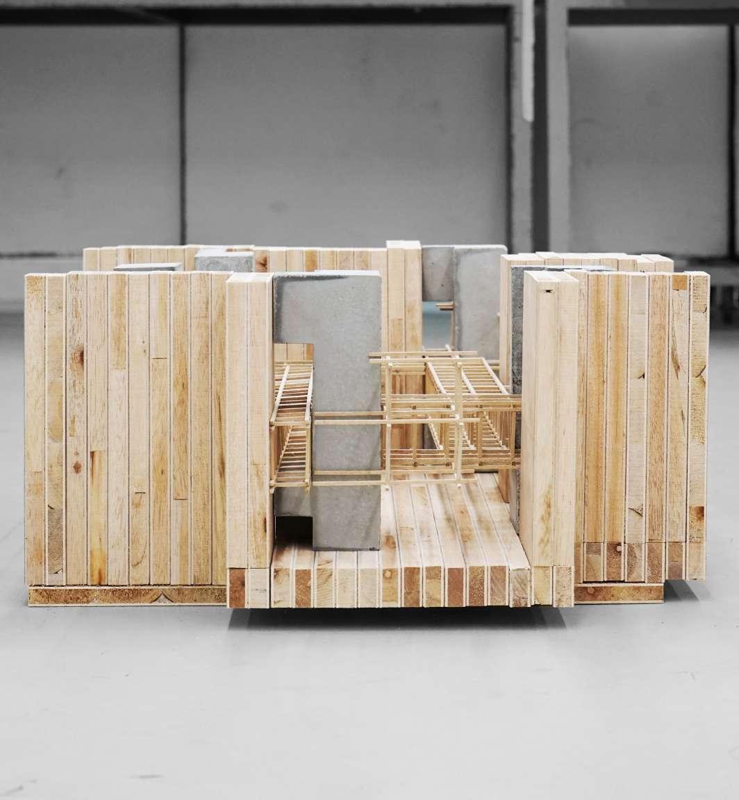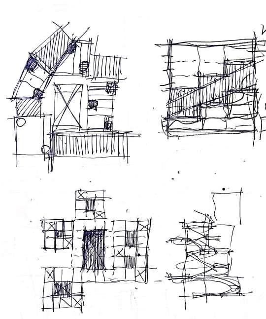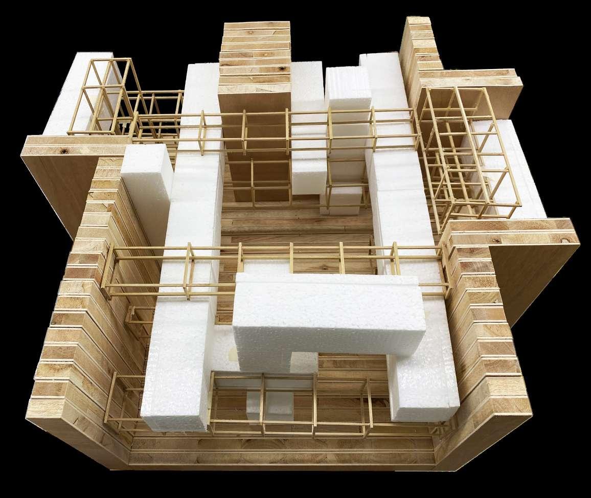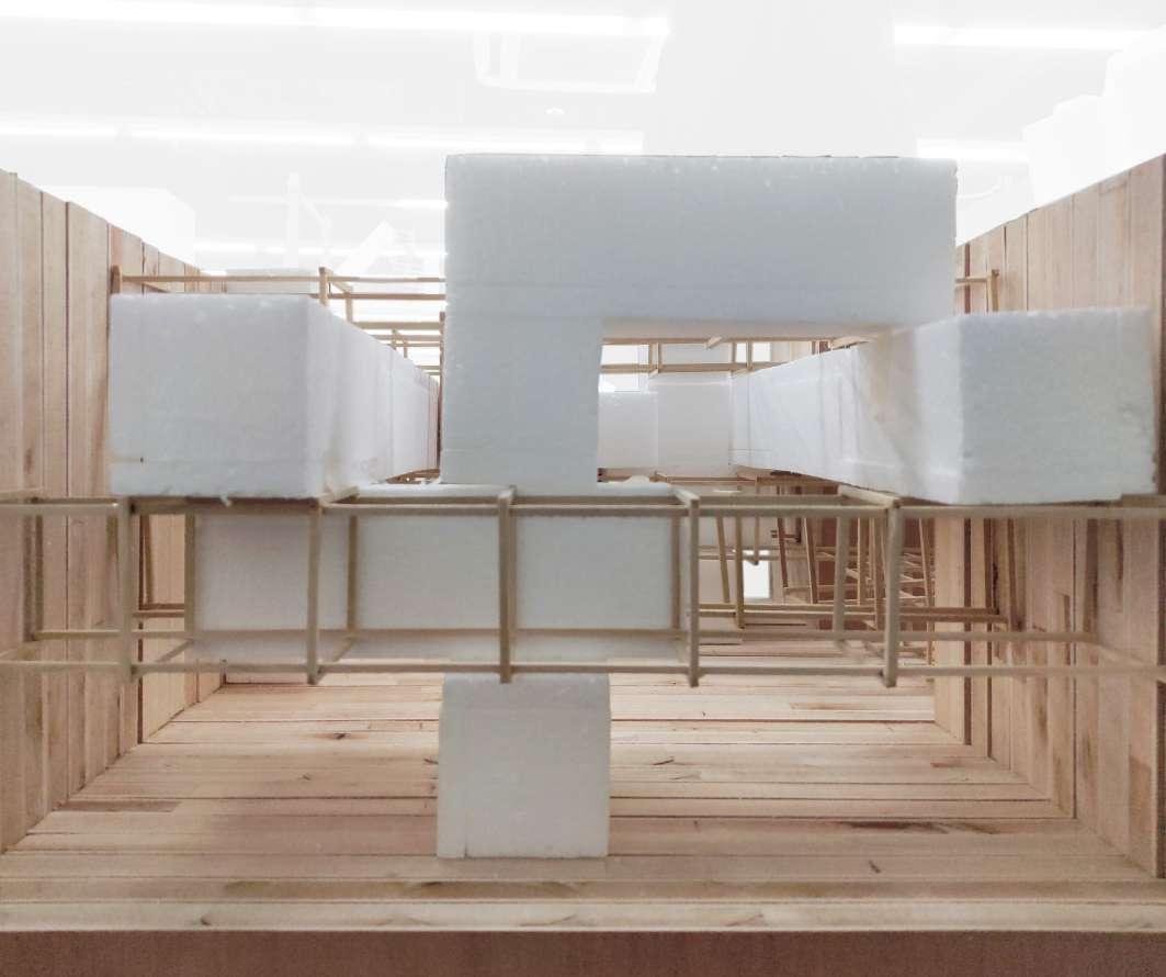 Regarding the mass and the frame, we had a discussion. Who is the structure? What is their tectonic relationship? Basically, we propose four basic prototypes: mass as core+frame as volume/ mass as core+ mass as volume/ frame as core+mass as volum/ frame as core+frame as volume. Based on this, we overlap 2 elements layer by layer.