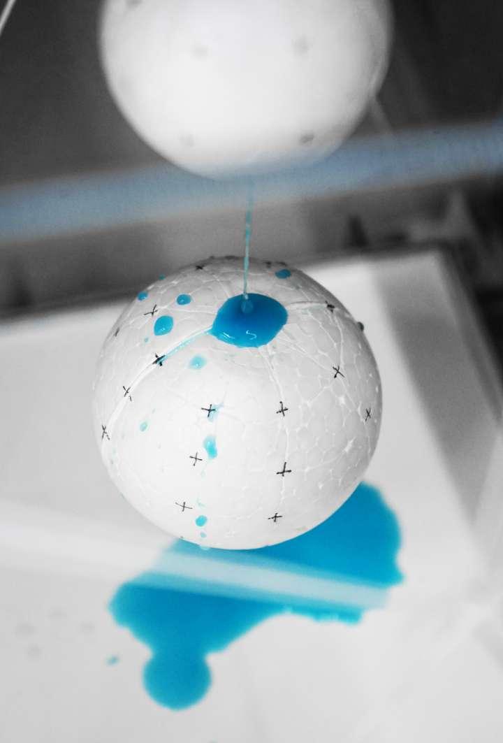 The middle two balls are connected with thin needles, so that it can ensure that the water can drip in the middle position and can drip randomly, and finally it can drip randomly on the drawing board.