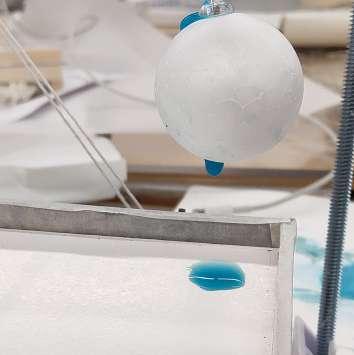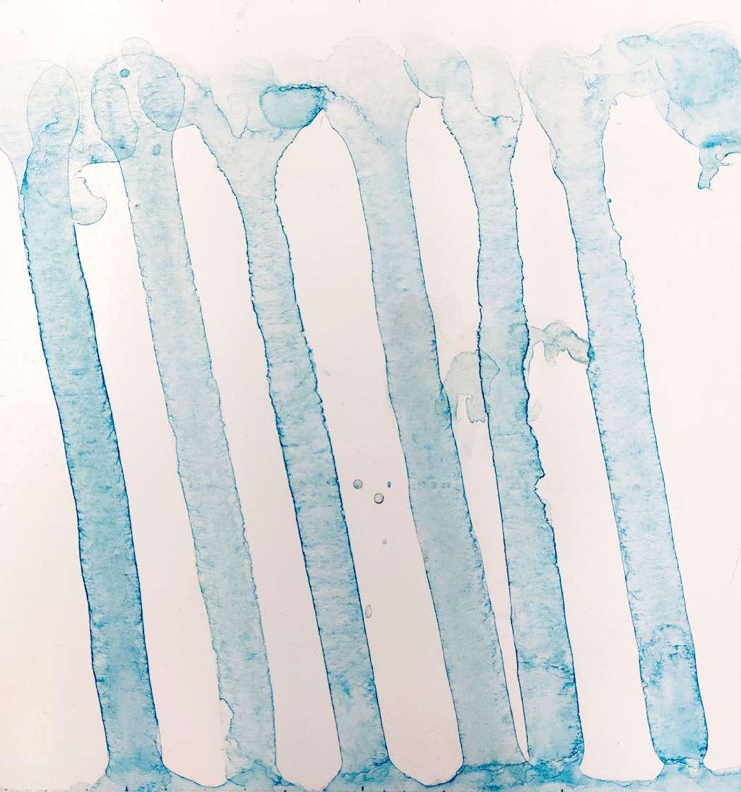 I should separate the pigments from the water and add a step in the middle to mix the water with the paint. In this way, only dripping water is needed, and the trajectory of the water will be captured by the first ball and form an obvious trajectory.