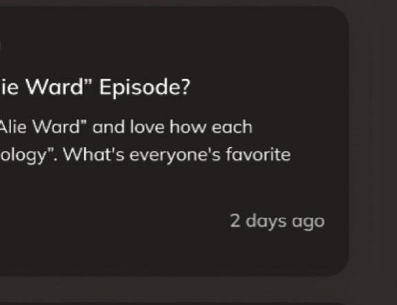 • Community: Discover page with top charts and discussion posts. Creator posts marked for clarity.