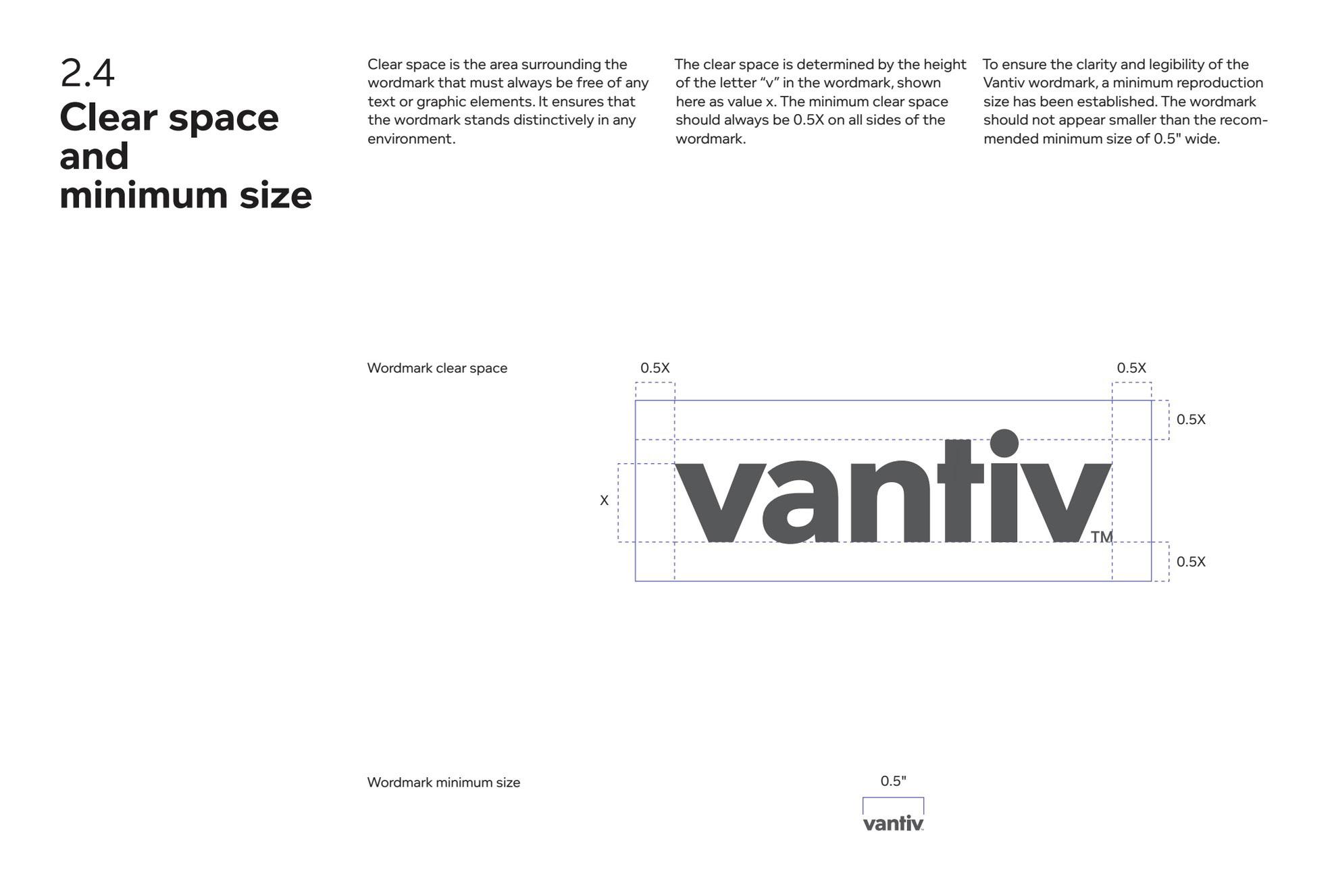 This guide includes the “Clear Space and Minimum Size” for logo usage, ensuring the logo’s integrity is maintained across various applications. The “v” of the logo sets a clear standard for the surrounding area.