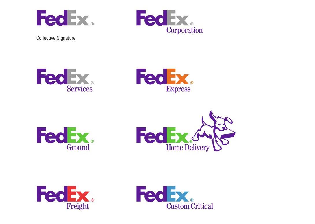 The guide showcases well the versatility of the FedEx logo across various company divisions, with each alternate logo maintaining the core identity wuth colors filling in the “Ex” while adapting to different service sectors.