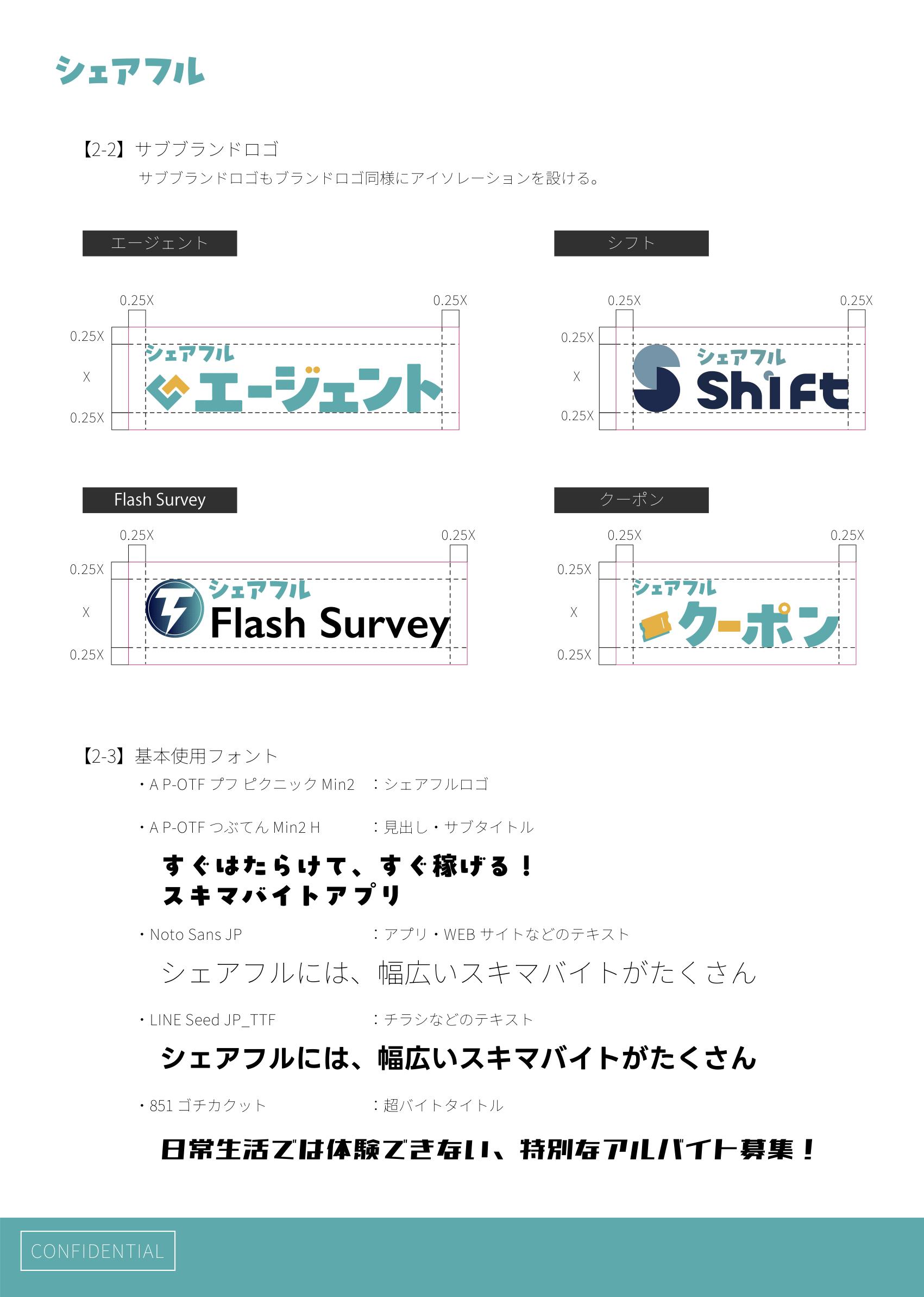 様々なクリエイティブ作成をする上で、『シェアフル』を正しく表現する配色を基準とする。白など 薄い色をベースとし、キーカラー『シェアフルカラー』とアクセントカラーをバランス良く配分 する。アクセントカラーはカラーパレットから選択もしくは、合う色を自由に選択可能。